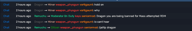 Hello dragon, Thank you for the report. I've gone over the situation and checked logs myself to see what happened. You first shot akacody to which he shot and killed you then you came back and broke nlr and punched him and then got killed you then punched makkay, This is indeed AMRDM since you had clear intent to kill. I will not be reprimanding remuchu I will include a screenshot of chat logs as well from the sit. I do not believe any actions of remuchu's were incorrect. If you wish you can appeal at xenorp.com/bans. Have a nice night.
